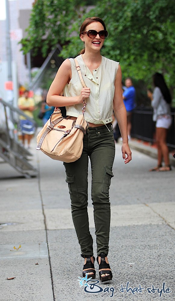 Leighton Meester is that girl! Gossip Girl filming is in full force right now and our favorite characters are bringing their style back to the streets of NYC. The very coveted Mulberry Alexa was spotted on the arm of Meester in her casual (and perfectly wearable) neutral and military green ensemble. Buy Leighton’s Mulberry Alexa Luxury-Handbag.net.